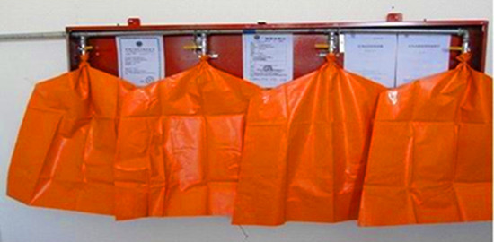 布袋式壓風(fēng)自救器的結(jié)構(gòu):布袋式壓風(fēng)自救裝置組成:自救布袋、雙頭內(nèi)絲連接螺帽、過濾器、連接桿、墊片及螺