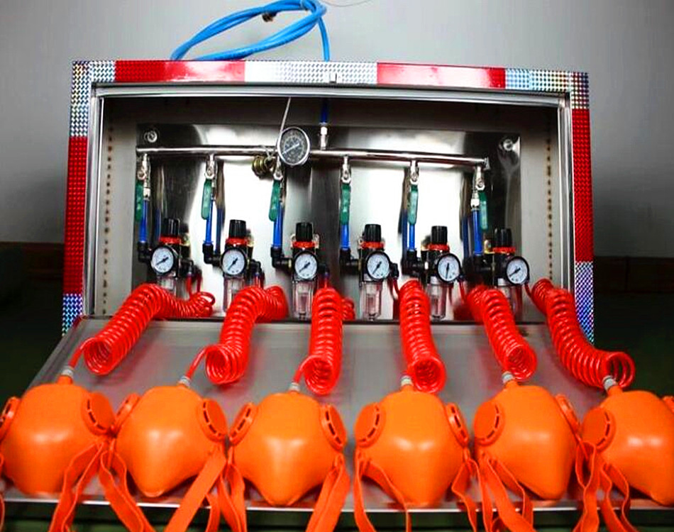 本款產品主要是由外管系統、壓風接口、進氣閥、進氣連接管、供氣量調節裝置、氣動減壓閥、排水裝置、面罩等構成。