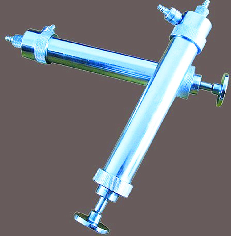 膠囊封孔器主要由壓力表、逆止閥、充氣軟管、快速接頭、測量管、快速接頭、鋼管、螺帽、卡頭、膠囊、卡套、進氣管等組成。瓦斯排出管每節長1m,共10節,封孔深度在10m范圍內可自由調節。