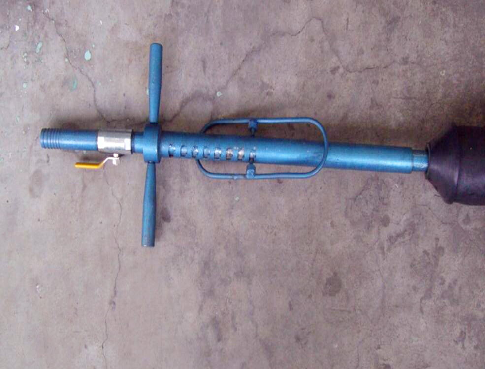 選定合適的封孔場所后,將相應規格的封孔器插入到所要封的孔中,通過快速瓦斯封孔器的手柄上下抽動,將氣體打進軟膠囊中,使其膨脹,直至將孔完全封住。