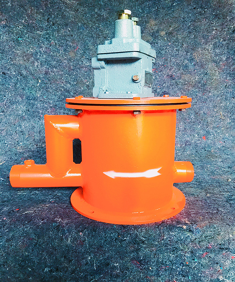 水箱內有不銹鋼浮子,浮子室有進水口,浮子、密封墊及排氣管出水口組成;利用水的浮力使浮子浮起打開微動開關,保證泵的控制回路接通;斷水保護裝置,礦用微動隔爆開關管道無水時浮子落下,微動開關打開,泵的控制回路斷開。